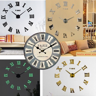 Jam dinding 3d Huruf romawi Diy Bulat Glowing Glow in the dark ukuran Besar Sedang Kucing Lucu - JM-12 DIY-106 Model Roman - MM63WC