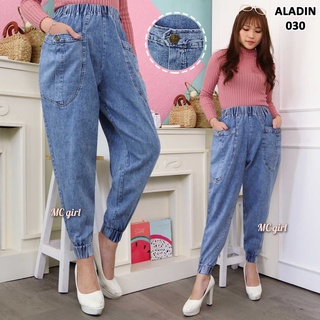 MC girl - Celana Jeans Aladin Warna Snow Blue Wanita / Celana Lepis Pinggang Karet Kantong Samping Snowblue / Celana Denim Kaki Karet
