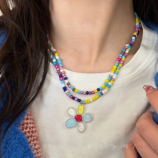 Kalung Manik-Manik Beras Desain Bambu Sederhana Buatan Tangan Warna-Warni Bunga Kecil Rantai Klavikula