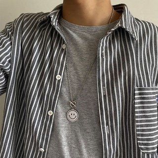 Kalung Titanium Steel Dengan Liontin Smiley Face Gaya Hip Hop Untuk Pria / Wanita