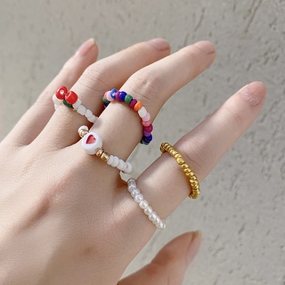Colorful Rice Beads Rings Set Pearl Love Handmade Beaded Ring