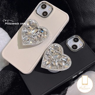 Casing Warna Solid Simple Mewah Kompatibel Untuk IPhone 7plus 11 14 13 12 Pro MAX XR 7 8 Plus X XS MAX Berlian Cinta Hati Bracket Phone Holder Plating Bingkai Lensa Logam Soft Cover