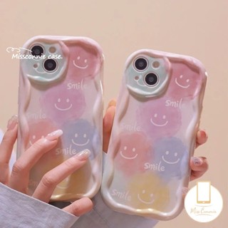IPHONE Tinta Cute Smiley Face Case Kompatibel Untuk Iphone12 13 11 14 Pro Max XR X 7 8 6s 6 Plus XS Max SE 2020 Senyum Indah 3D Wavy Curved Edge Glossy Shockproof Soft Cover