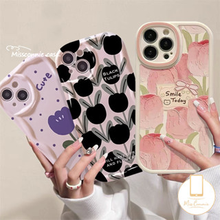 IPHONE Casing Bunga Tepi Bergelombang Kompatibel Untuk Iphone7 14 8 6 6s Plus 11 14 12 13 Pro Max X 7Plus XR XS Max SE 2020 Lukisan Minyak Keberuntungan Tulip Bunga Biru Soft Tpu Phone Cover