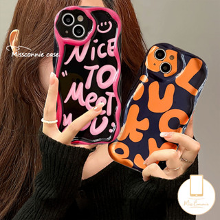 Ins Fashion Smile Art Letter Case Untuk Samsung A14 A23 A50 A24 A13 A04 A30s A11 A20 A04s A30 A20s A02s A10s A51 A03 A12 A32 A21s A03s A52 Lembut 3D Wavy Curved Edge Glossy Case
