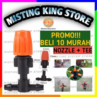 MIST NOZZLE ORANGE SPRAYER MISTING HEAD SPRAY SPRINKLER + NEPEL TEE SELANG PE PU 7MM 6MM