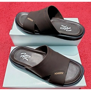 Sandal Slipper Pria Rain03 / Sendal Slide Slop Kulit asli Coklat Full Kulit