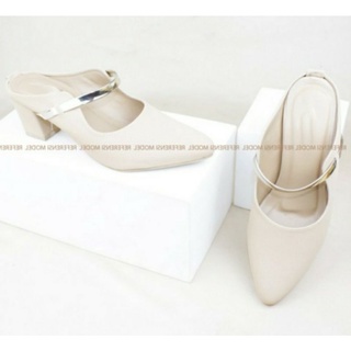 BIG SIZE 41-42-43-44-45 Higheels Woman / Bustong Mules Wanita Hak Tahu JUMBO Premium Sendal SLOP Semi Formal Krem