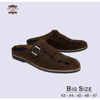 Bisa COD / Sandal Bustong Formal Pria Big Size 43-47 Sendal Slop Casual Exclusive Kulit Bapak2 Coklat Jumbo Size Besar,43