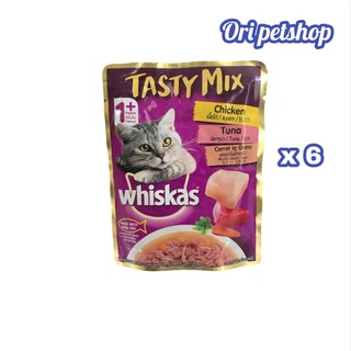 ( 6 pcs) Whiskas Tasty Mix Pouch Sachet 70gr Makanan Kucing Basah Adult - Chicken Tuna Carrot In Gravvy