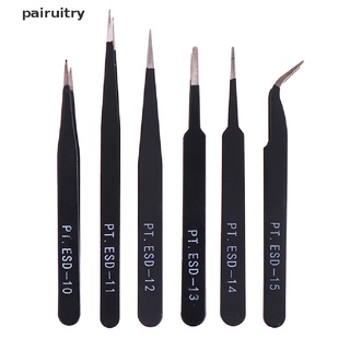 Prt 6Pcs Pinset Lurus / Melengkung anti Statis esd Untuk Reparasi PRT