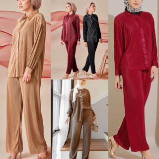SETELAN SET STELAN SATIN PLISKET MUSLIM MODERN WANITA IMPORT IMPOR SATIN PLISKET MODEREN PREMIUM MURAH