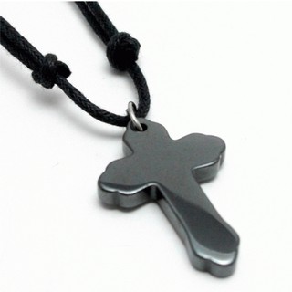 Kalung Salib Batu Hitam Bluestain Tali Hitam Aksesoris Pria Wanita Rohani Kristen