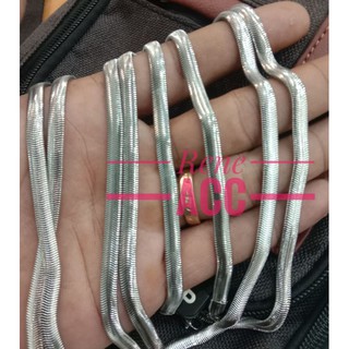 Kalung Titanium pipih silver stainlessteel untuk pria wanita
