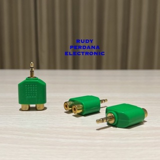 SAMBUNGAN T 2 SOKET RCA TO 1 JACK MINI 3.5MM STEREO GOLD PLATED