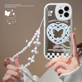 IPHONE Cinta Hati Kotak-Kotak Kupu-Kupu Fashion Phone Case Cover Dengan Manik-Manik Rantai Untuk Iphone7 8 PLUS X XR XS 11 12 13 14 Mini PRO MAX SE 2020
