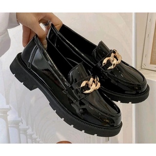 Sepatu Wanita Terbaru Kasual Hitam / Sepatu Wanita Kekinian Viral / Sepatu Wanita Docmart Loafers Hak Fashion Rantai Best Seller / Sepatu Kulit Wanita Fashion / Bisa Cod