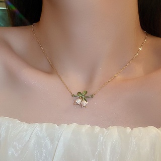 Kalung Rantai Gaya Korea Dengan Liontin Daun Hijau Putih Untuk Wanita