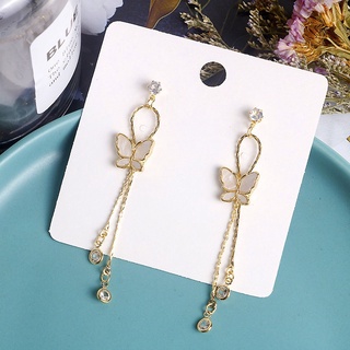 Anting Rumbai Panjang Desain Kupu-Kupu Bahan Silver Needle Untuk Wanita