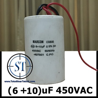 Capacitor 6+10 uF/450V CBB60 6+10uF 5% 50/60Hz Putih Kapasitor Kipas Angin Jet Pump Mesin Cuci Mesin Jahit 6 & 10 uF 450 VAC