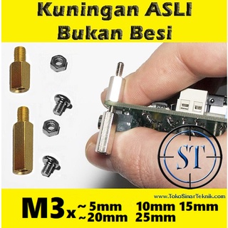 Spacer PCB M3 x 10mm-20mm Slicer Kaki / Dudukan PCB Kuningan Metal Spaser Spicer 5mm 10mm 15mm 20mm 25mm Brass Hex Baut Mur Box Ampli Brass