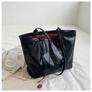 SG1899 syafniegalery hand bag import motif kotak besar tali rantai tas kerja wanita kulit
