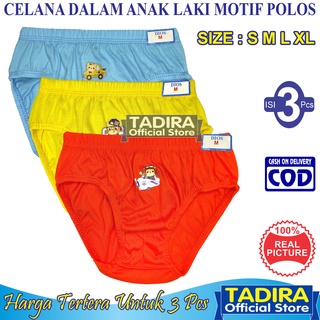 3 Pcs Celana Dalam Anak Laki-Laki Bahan Katun Lembut Motif Polos Multiwarna TADIRA Store
