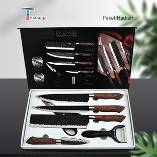 Set Pisau Daging Premium 6 in 1 Set Knife Hadiah Pisau Set Baja Karbon Pisau Logam Keramik Ceramic Peeler