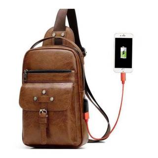 Tas Selempang Pria Kulit Import USB Port Chest bag Sling Bag