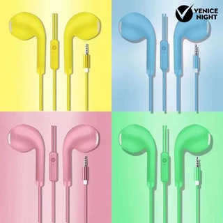 (VNEP) (Berkabel) Earbud Efek Stereo dengan Mikrofon Suara HiFi Telinga Datar Anti-interferensi Pemutar Musik Warna Macaroon 3.5mm In-ear Headphone Aksesori Ponsel