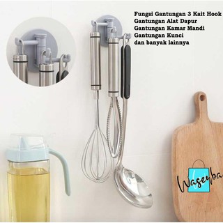 Gantungan 3 Kait Hook Putar Dapur Kamar Mandi Serbaguna / Gantungan Tempel
