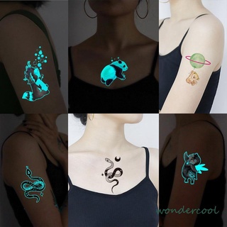 Biru Hijau Bercahaya Tahan Air Kartun Ruang Hewan Stiker Tato Festival Musik Stiker Wajah-Won