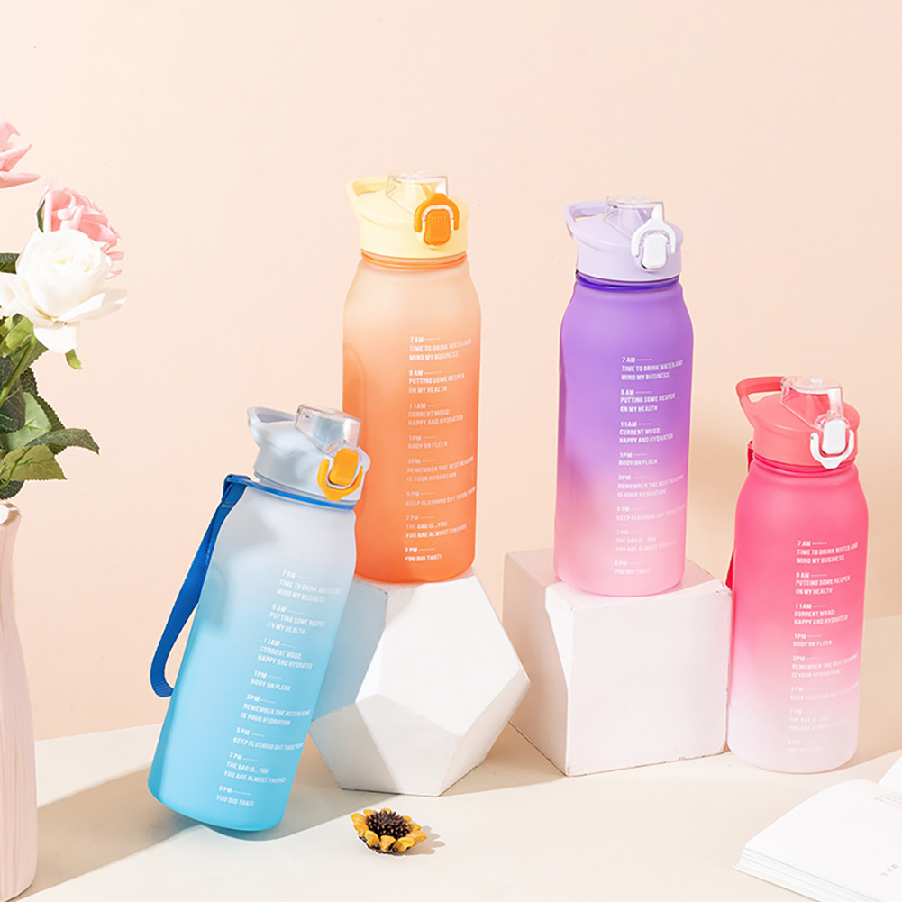 Botol Air Kapasitas Besar 1, 3L dengan Penanda Jerami Cangkir Buram Anak Perempuan Botol Perjalanan Portabel Besar Cangkir Olahraga Kebugaran