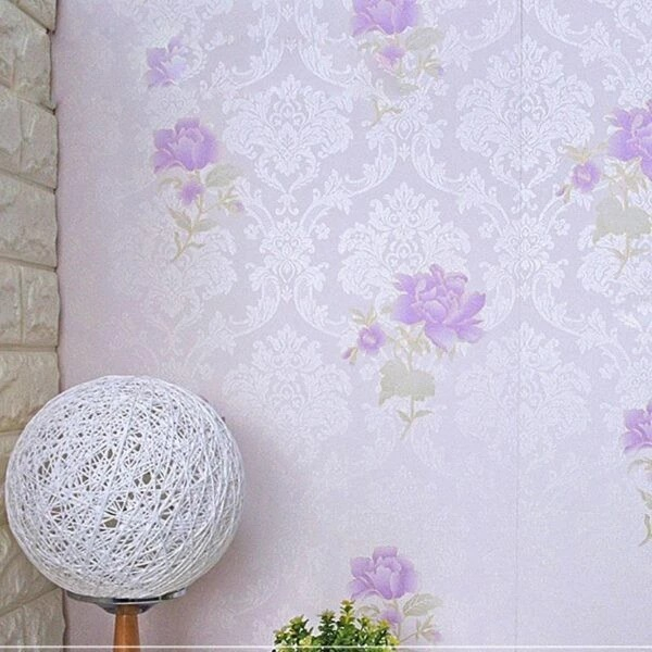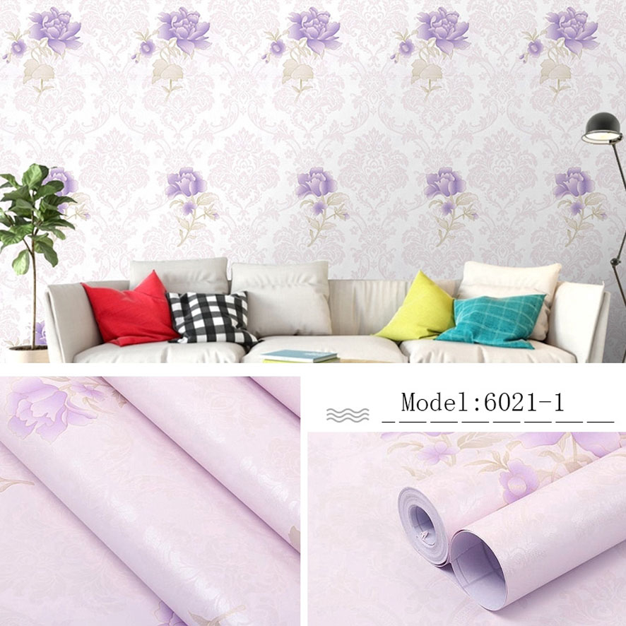 Detail TOKO21 WALLPAPER MOTIF FLOWER UNGU DASAR SOFT PINK