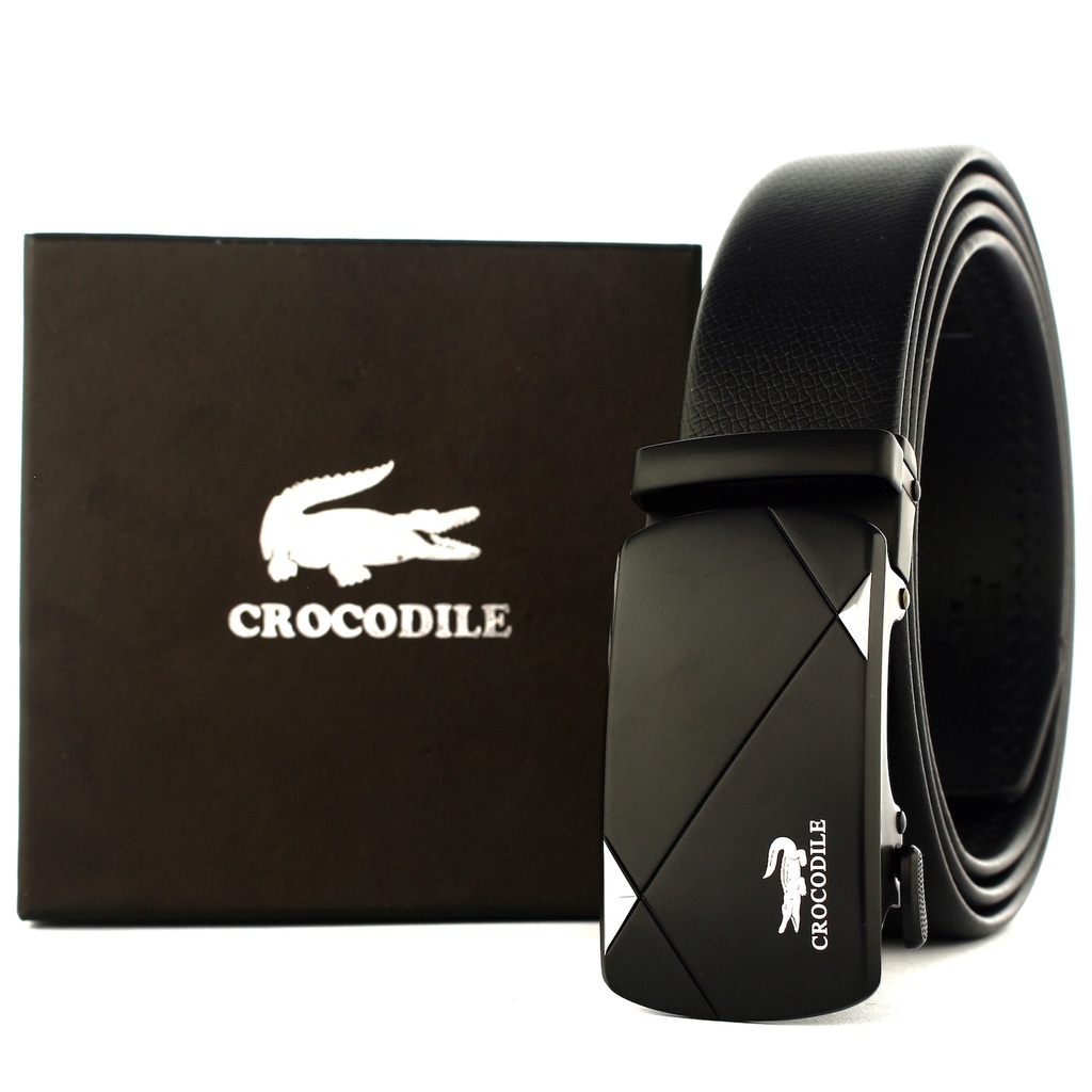 TOKOKOE - Gesper Ikat Pinggang Pria model Rel Ban Pinggang Otomatis Bahan Kulit Jumbo Size - Croc CR67 Black