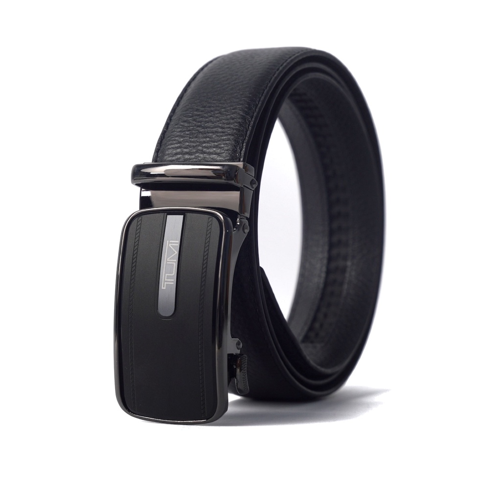 TOKOKOE - Gesper Ikat Pinggang Pria model Rel Ban Pinggang Otomatis Bahan Kulit Sapi Asli Premium - TM 263-2 Black