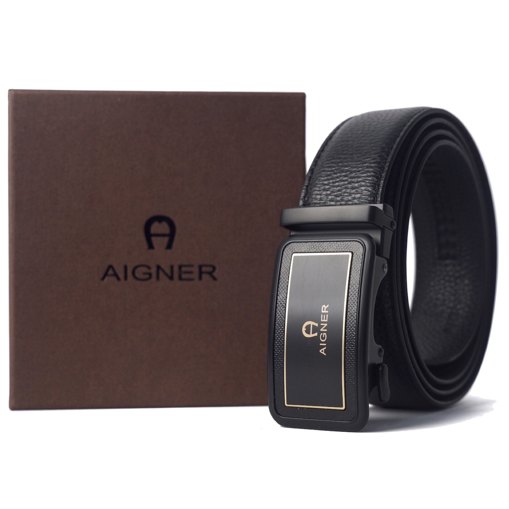 TOKOKOE - Gesper Ikat Pinggang Pria model Rel Ban Pinggang Otomatis Bahan Kulit Sapi Asli Premium - AIG 263-11 Black