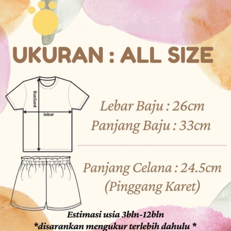 Lebar Dada : 26CM Panjang Baju : 33cm Panjang Celana : 24.5cm (Pinggang Karet) ***