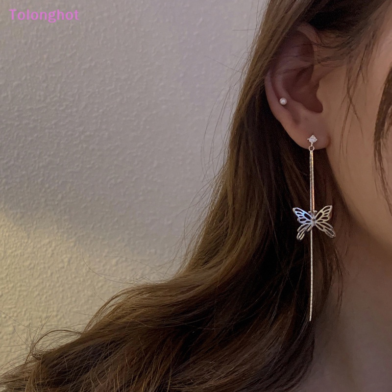 Detail Tolonghot> Anting Kupu-Kupu Berongga Rumbai Asimetris Untuk Wanita Anting Garis Telinga Super Panjang Perhiasan Fashion well