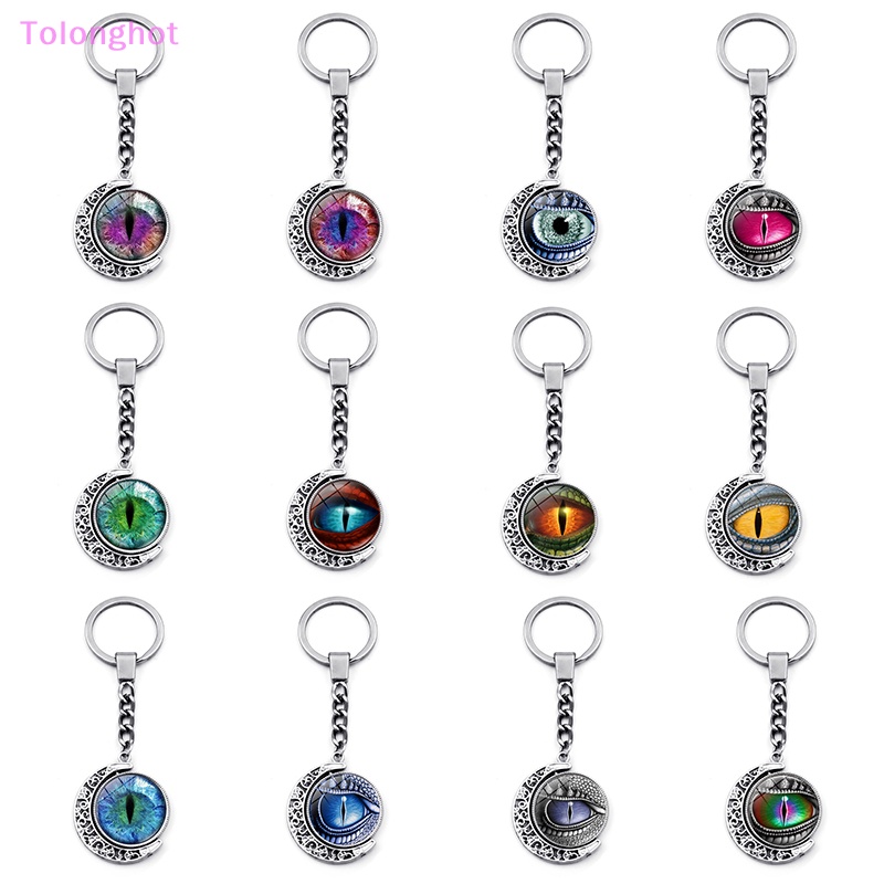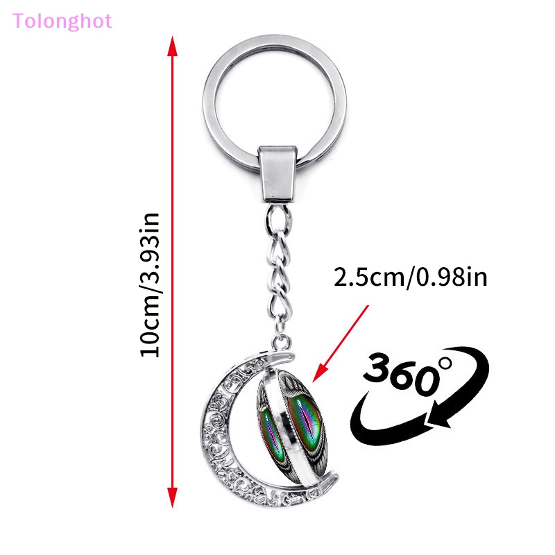 Tolonghot> Kelengkeng Batu Permata Gantungan Kunci Liontin Dua Sisi Rotag Pola Vintage Liontin Bulan Fashion Kreatif Perhiasan Tas Ornamen well