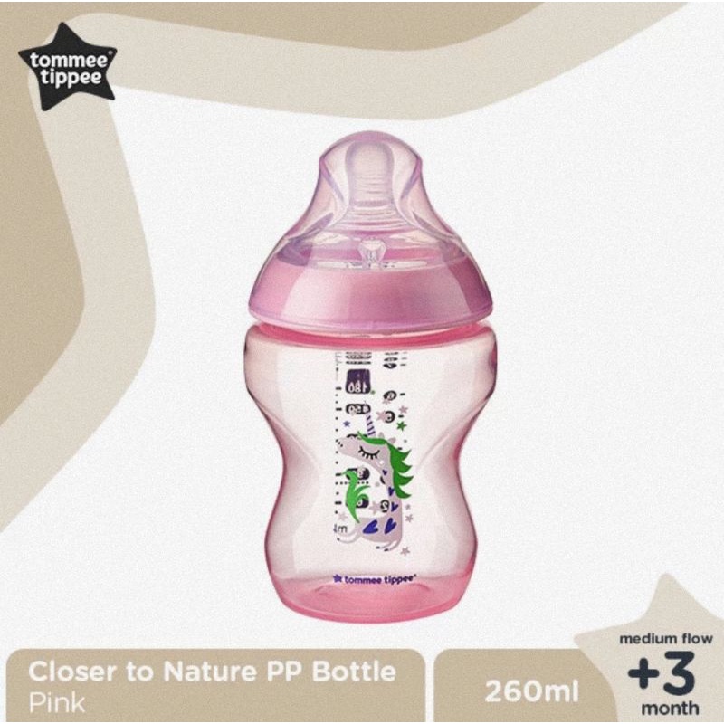 Tommee Tippe Closer to Nature Botol Bayi PP mempunyai kelebihan : - Dot leher yang lebar, lembut, dan lentur akan membuat bayi merasakan secara alami seperti menyusui langsung dari payudara ibu. - Dot Nipple Terbuat dari 100% Silikon Medical Grade - Teknologi katup ventilasi yang mengurangi udara penyerapan dalam botol membuat Kualitas Nutrisi ASI tidak menurun dan bayi lebih nyaman. - Bentuk botol Close to Nature yang compact akan memungkinkan bayi untuk lebih dekat dengan ibu. - Bebas dari BPA dan bahan berbahaya lainnya, sangat aman digunakan untuk bayi. - Bentuk dot yang unik memungkinkan untuk melenturkan dan meregangkan. - Tahan terhadap suhu panas dengan temperature sampai dengan 120oC - Cocok untuk direbus, di steam dan sterilisasi dengan air dingin. - Tersedia berbagai warna botol.