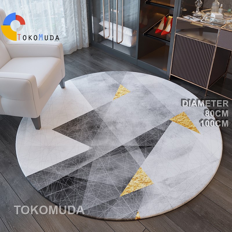TOMUMUDA Karpet Bulat Polyster Diameter 100Cm Dan 80Cm/Karpet Bulat Aestetik /Karpet Bulat Modern