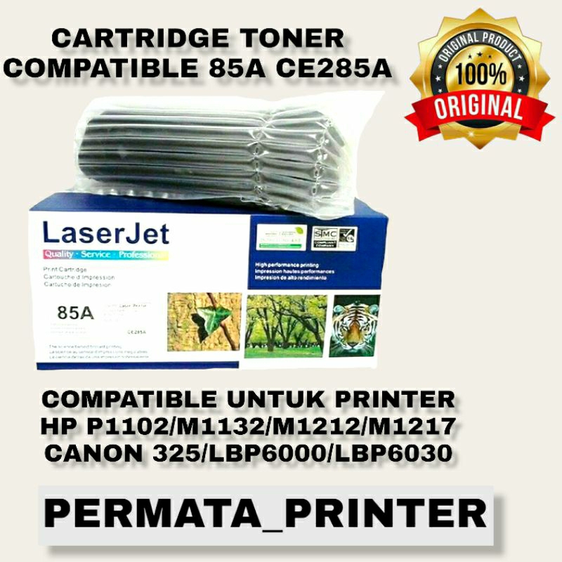 Compatible Toner Laser Jet adalah Cartridge dengan kualitas setara dengan Original, Bukan cartridge Refill. Semua sparepart Baru, dilengkapi Seal, Plastik gelembung dan dus yang sangat aman dari benturan. Hasil cetak tidak kalah dengan Original.