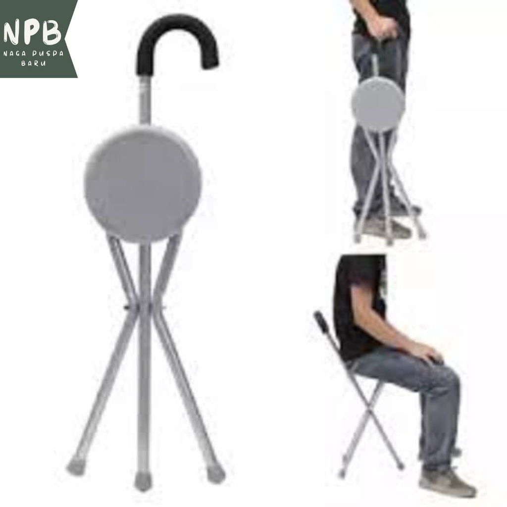 Tongkat Kursi Lipat Bantu Jalan 2 in 1 - Tongkat Bantu Jalan 3 Kaki Bisa Dipakai Duduk