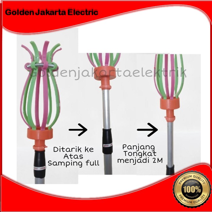Kelebihan Stik Lampu : - Pemasangan jadi mudah & praktis - Gagang bisa di perpanjang pendekan - Bisa sampai untuk Lampu 40 Watt seperti di foto produk - tidak perlu naik tangga - Bisa di gunakan untuk Pemetik Buah - Bersihkan sarang laba - laba Dll
