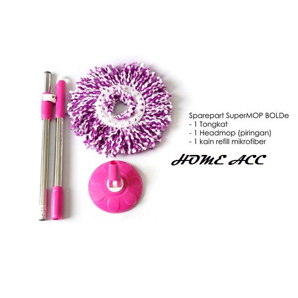 Sparepart set Super MOP BOLDe termasuk : - 1 tongkat - 1 headmop - 1 Kain refill mikrofiber