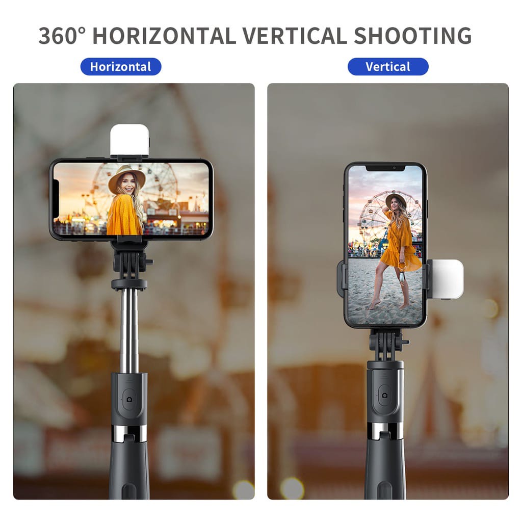 ▶ Keunggulan : ✔ Dapat berputar hingga 360° ✔ Kompak & ringan, Nyaman untuk dibawa dan disimpan untuk perjalanan ✔ Mendukung layar vertikal dan horizontal ✔ Bluetooth Support Long Distance 10m control ✔ Kompatibilitas Luas, Penghapusan klip ponsel,Ubah basis kamera
