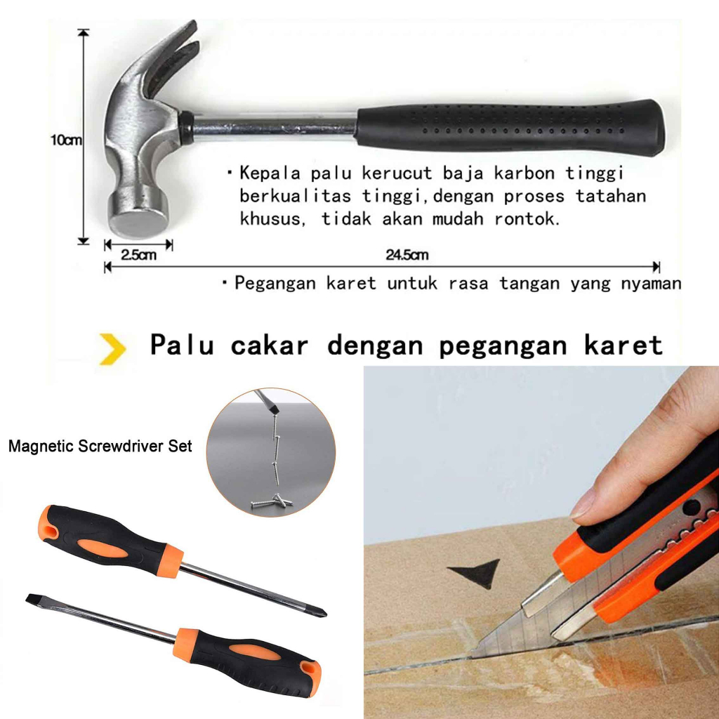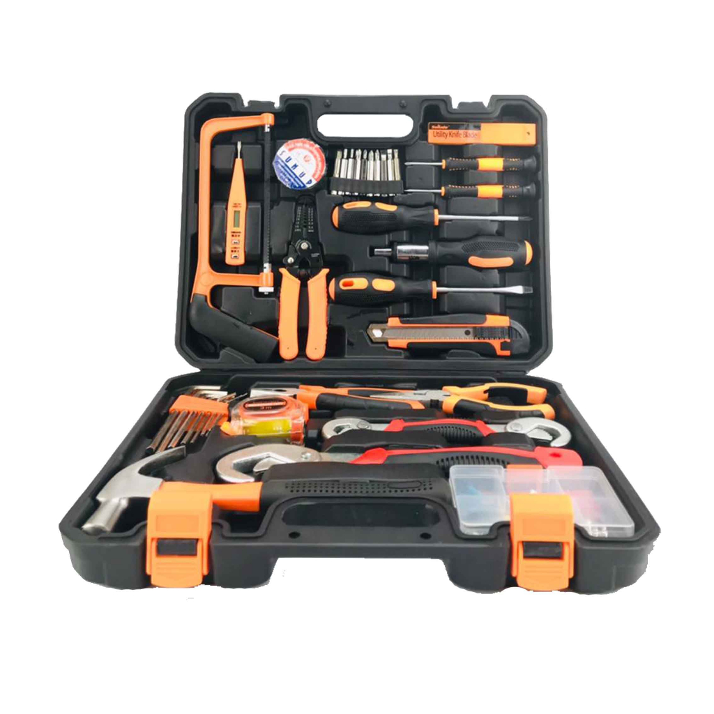Tool Box / Perkakas Tukang / Alat Pertukangan Besar / Tool 1 Set Satu set alat-alat perkakas yang satu ini tidak tangung-tanggung dalam membantu anda untuk melakukan reparasi maupun pekerjaan lainnya. Hadir dengan banyak jenis perkakas mulai obeng, tang, kunci pas, cutter, meteran, kunci hex, tester listrik dan lainnya. Miliki set perkakas ini untuk keperluan reparasi Anda sehari-hari. Box untuk produk ini memiliki tempat khusus untuk semua perkakasnya. Hal ini membuat semua peralatan di produk tersimpan secara rapi dan teratur sehingga anda bisa dengan mudah menggunakannya saat diperlukan. Penggunaan bahan plastik yang kuat membuat kotak perkakas set ini tidak mudah pecah saat terjatuh.