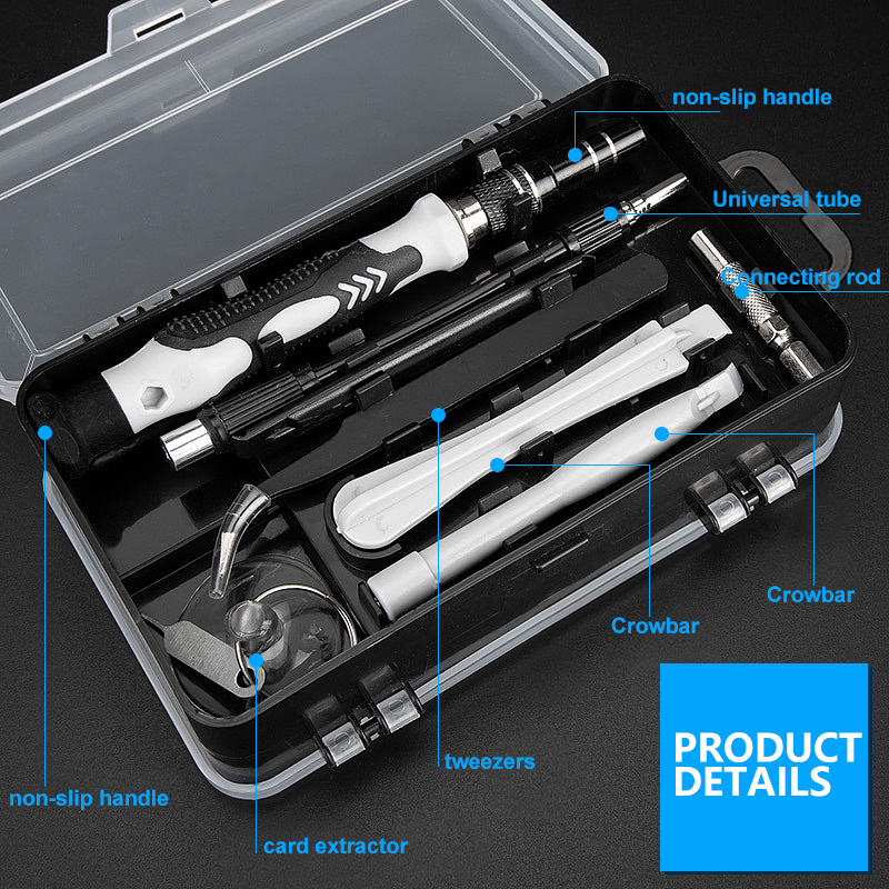 Dengan 98 kepala obeng dan 17 alat untuk membuka smartphone atau laptop anda menjadikan scredriver ini sangat tepat untuk anda yang senang membongkar barang elektronik berukuran kecil.