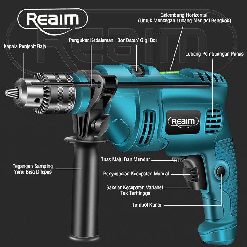 Detail REAIM Mesin Bor 13mm Mesin Bor Impact Drill Listrik Bor beton Bor besi Bor Murah Laris Kualitas Mantap